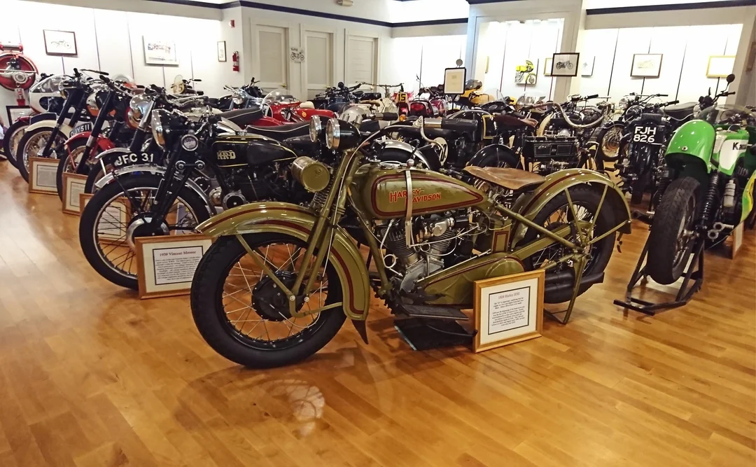 Mostly racing motorcycles but a collection of motorcycles from as far back as 1916. Bikes on display rotate each month.